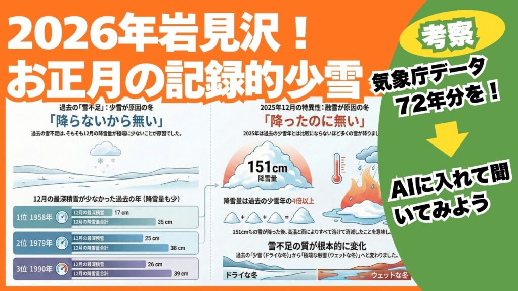 しかし観測値的には、11月、12月に降った雪の量は約180cm!