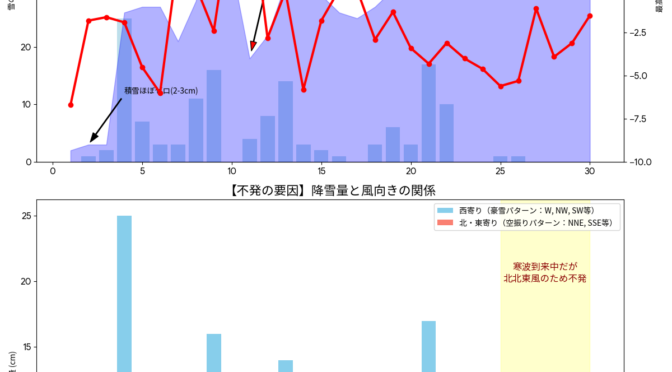 〈令和8年2月11日投稿〉 今シーズンの岩見沢市は本当に雪が少なくて驚くばかりですが、改めて気になるポイントをまとめてみました。 1月の平均気温は-5.6℃と近年の傾向と比較すると少し寒いぐらいで、その数値だけを見れば豪 … 続きを読む 2026年1月の雪情報メモ